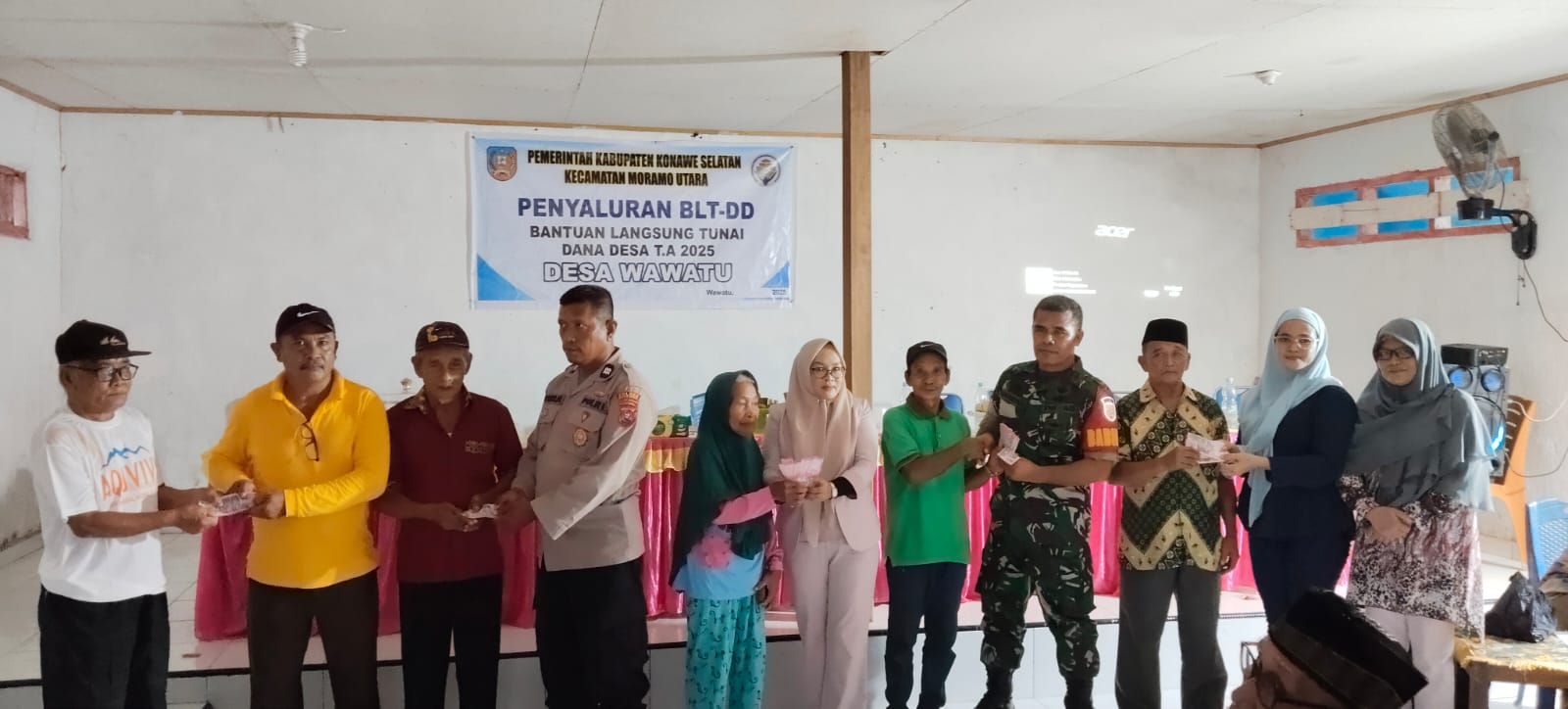 teropongangkasa.com/Konawe Selatan_Pemerintah Desa Wawatu Kecamatan Moramo Utara kembali menyalurkan Bantuan Langsung Tunai (BLT) yang bersumber dari Dana Desa kepada warga yang berhak menerima di Balai Desa Wawatu pada Hari Sabtu, 24/05/2025